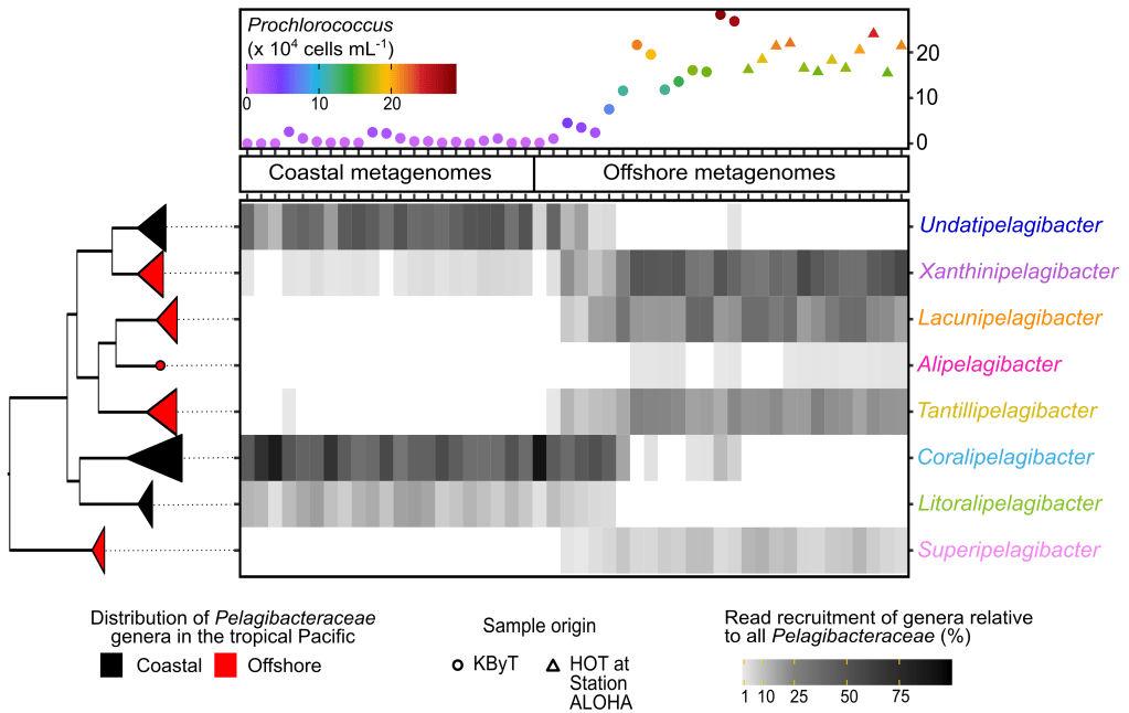 With the new SAR11 isolate genomes, I used comparative pangenomic approaches and metagenomic read recruitment to delineate genetic and functional variation and characterize ecotypes of the SAR11 across nearshore Kāneʻohe Bay, the adjacent offshore, and the central North Pacific Subtropical Gyre. I defined the genomic variation underlying distinct SAR11 ecologies and how these traits differ among and between SAR11 genome clusters with distributions specific to the coastal tropical Pacific and those with distributions specific to the surrounding offshore and ocean gyre waters. This work provides new insight into how SAR11’s impact on the dissolved organic matter pool and biogeochemical cycles in the ocean.