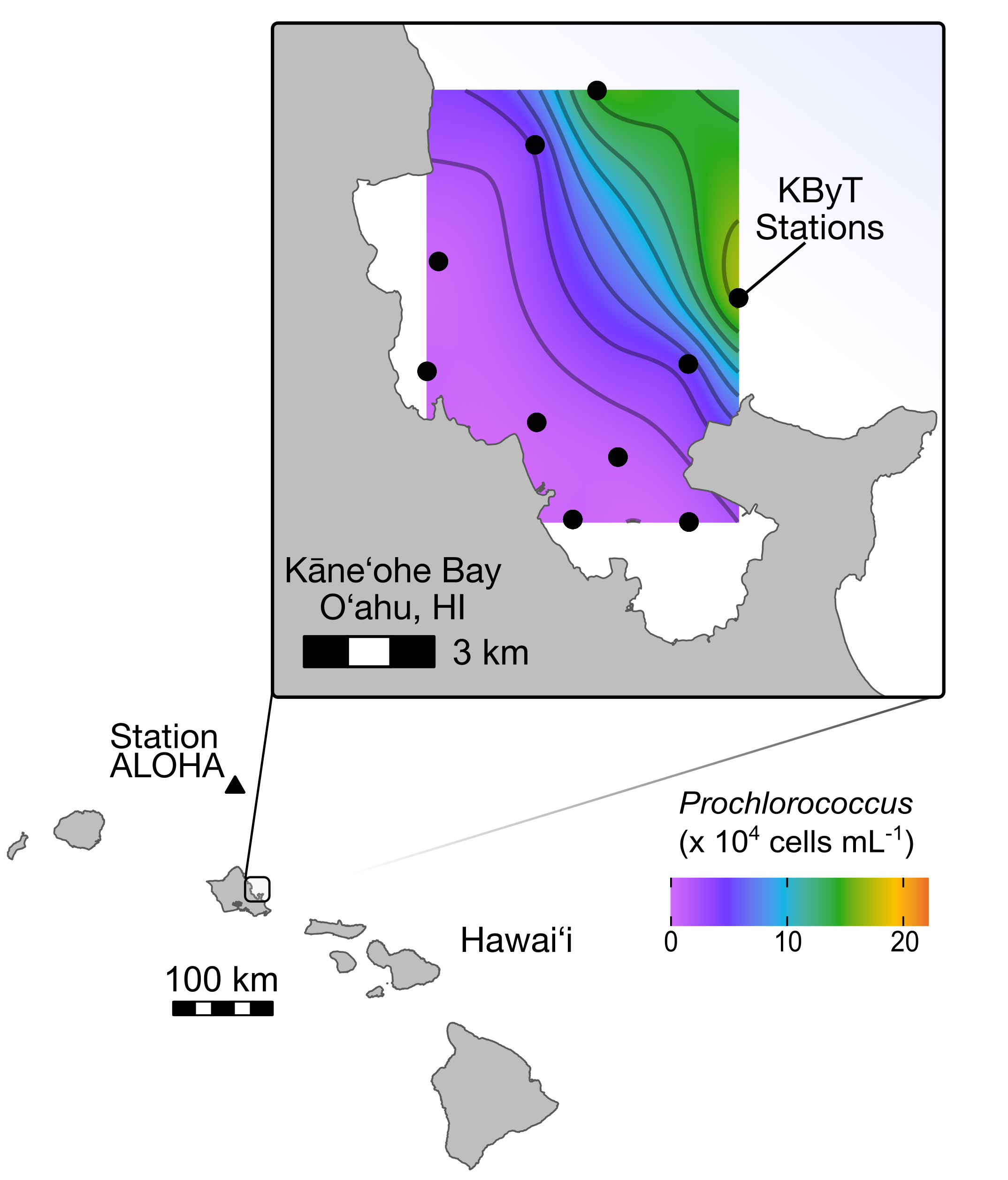 I examined the spatio-temporal distributions of the 5 major clades of SAR11 marine bacteria across seasons and along the nearshore to offshore physiochemical gradients within and adjacent to Kāneʻohe Bay. This study characterizes how SAR11 genetic diversity partitions into distinct ecological units in coastal and offshore environments of the tropical Pacific, and correlates this diversity with abiotic and biotic parameters, including patterns of Prochlorococcus and Synechococcus abundance.